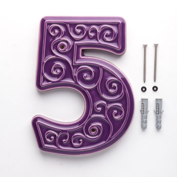 Numer domu, do przykręcenia, cyfra 5, fioletowa