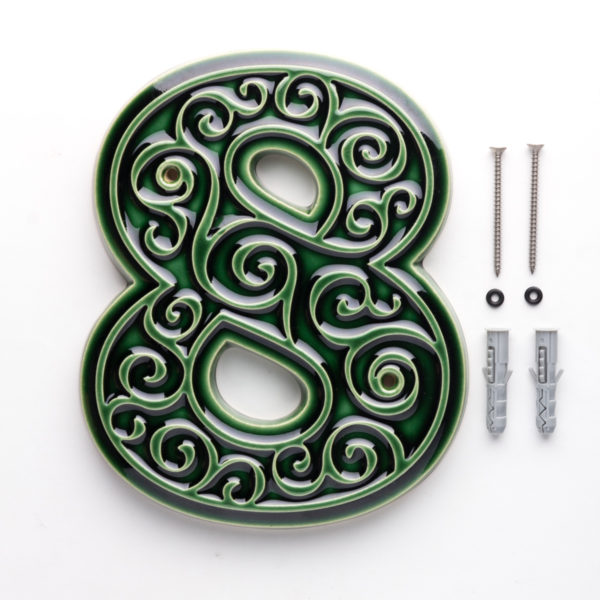 Numer domu, do przykręcenia, cyfra 8, zieleń butelkowa