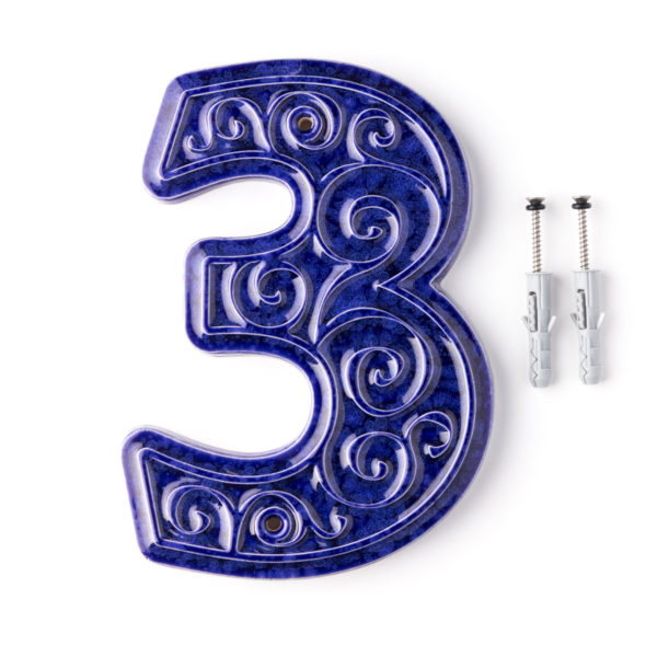 Numer domu, do przykręcenia, cyfra 3, niebiesko-granatowa