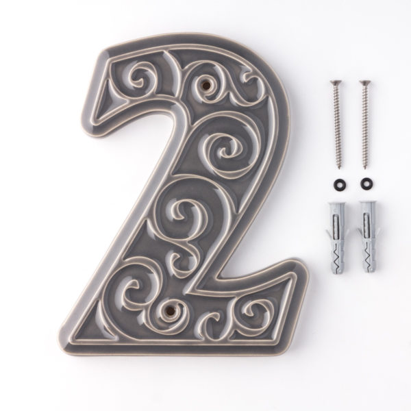 Numer domu, do przykręcenia, cyfra 2, szara