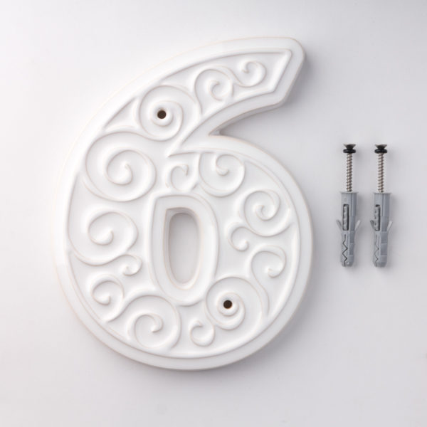 Numer domu, do przykręcenia, cyfra 6, biała