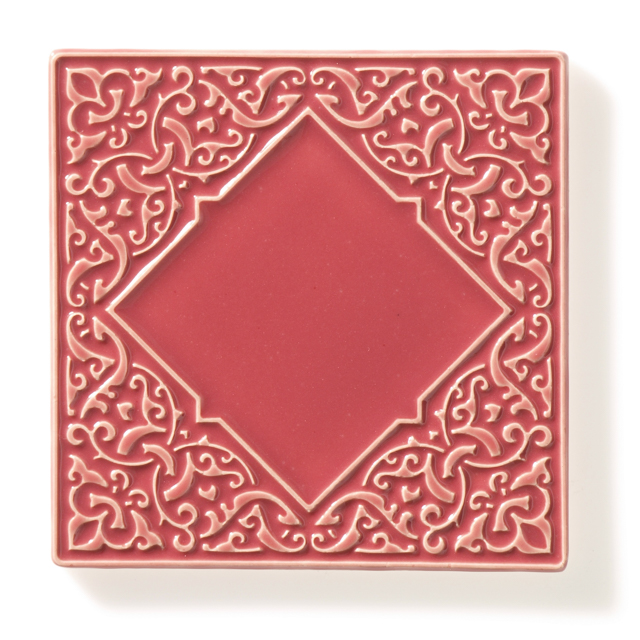 Kafel ceramiczny ręcznie robiony, ścienny z lekko wypukłym, misternym ornamentem. Wykonany z jasnej gliny. Pokryte szkliwem, w sposób który odpowiednio podkreśla ozdobny wzór arabeskowej powierzchni. Dwukrotnie wypalany. Odporny na wodę, ścieranie, wysokie i niskie temperatury. Montaż kafli standardowy. Na zamówienie istnieje możliwość wykonania większej ilości podobnych.