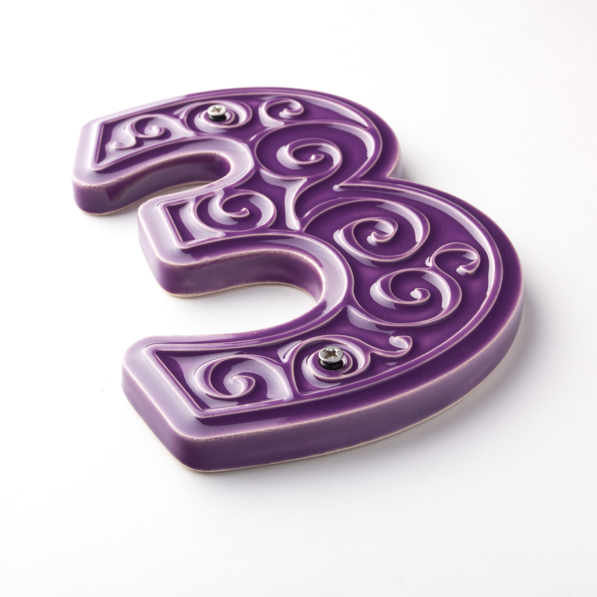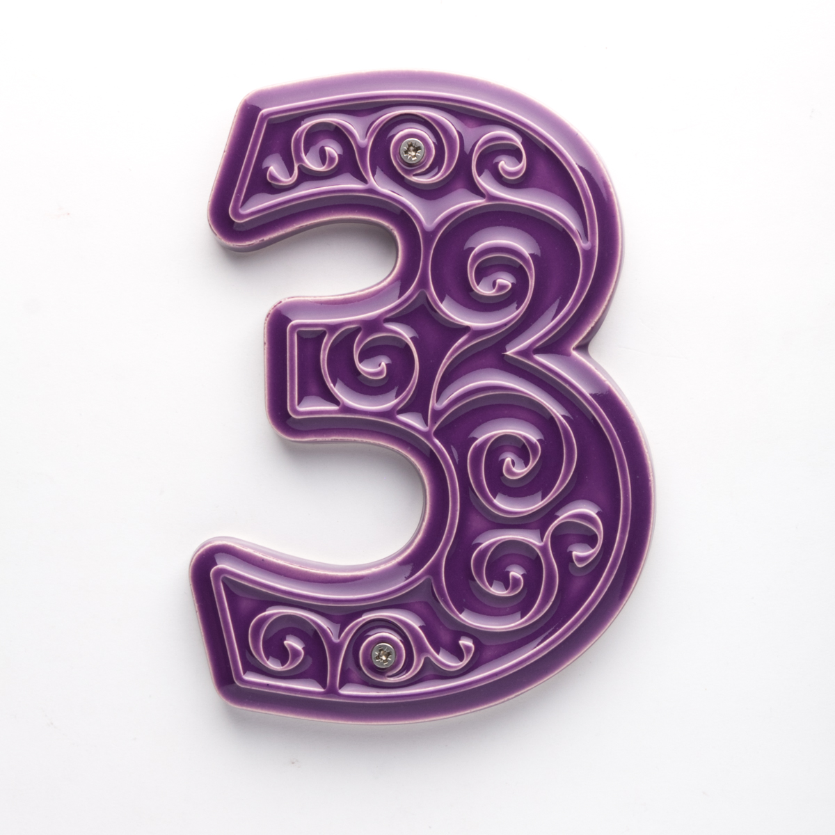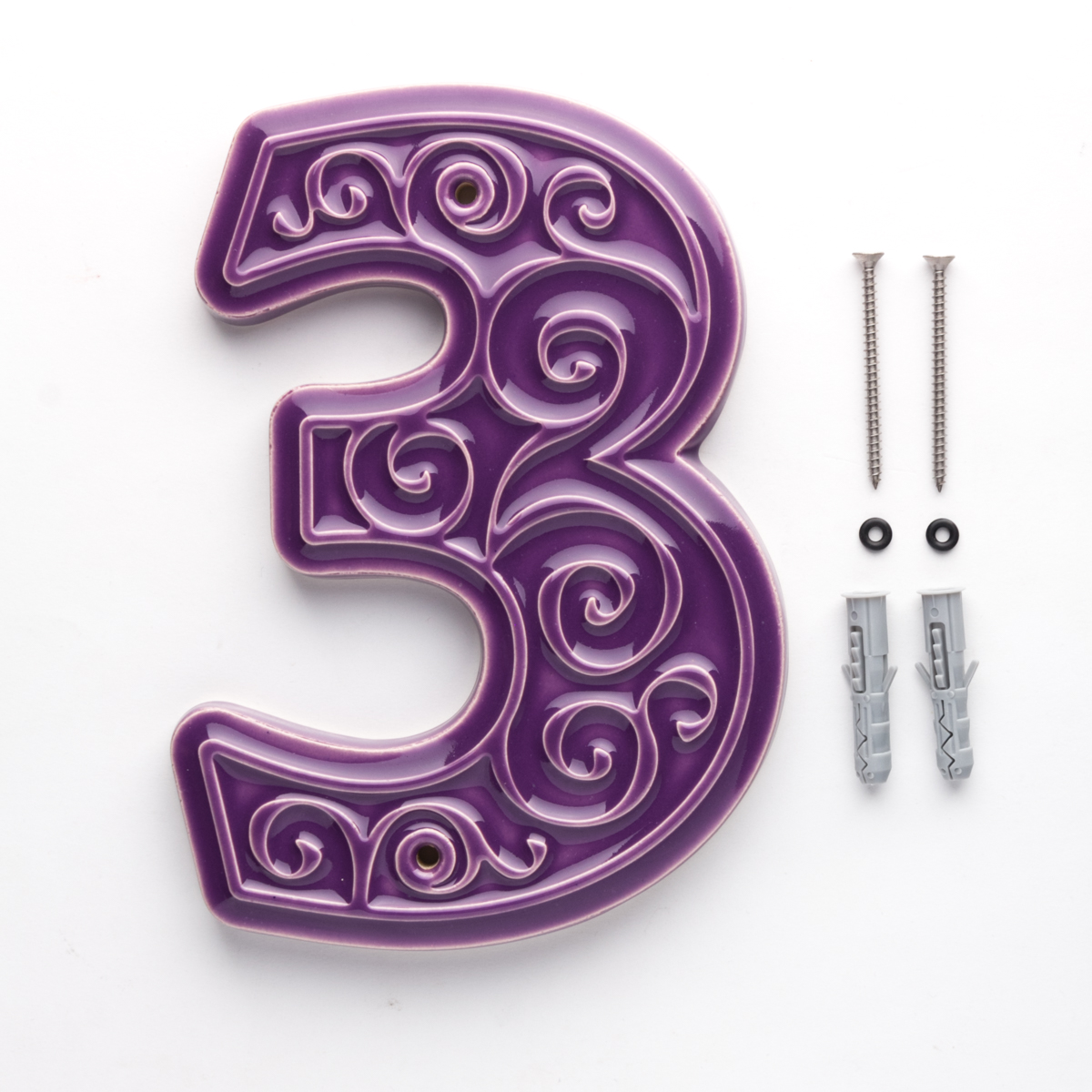 Numer domu, do przykręcenia, cyfra 3, fioletowa