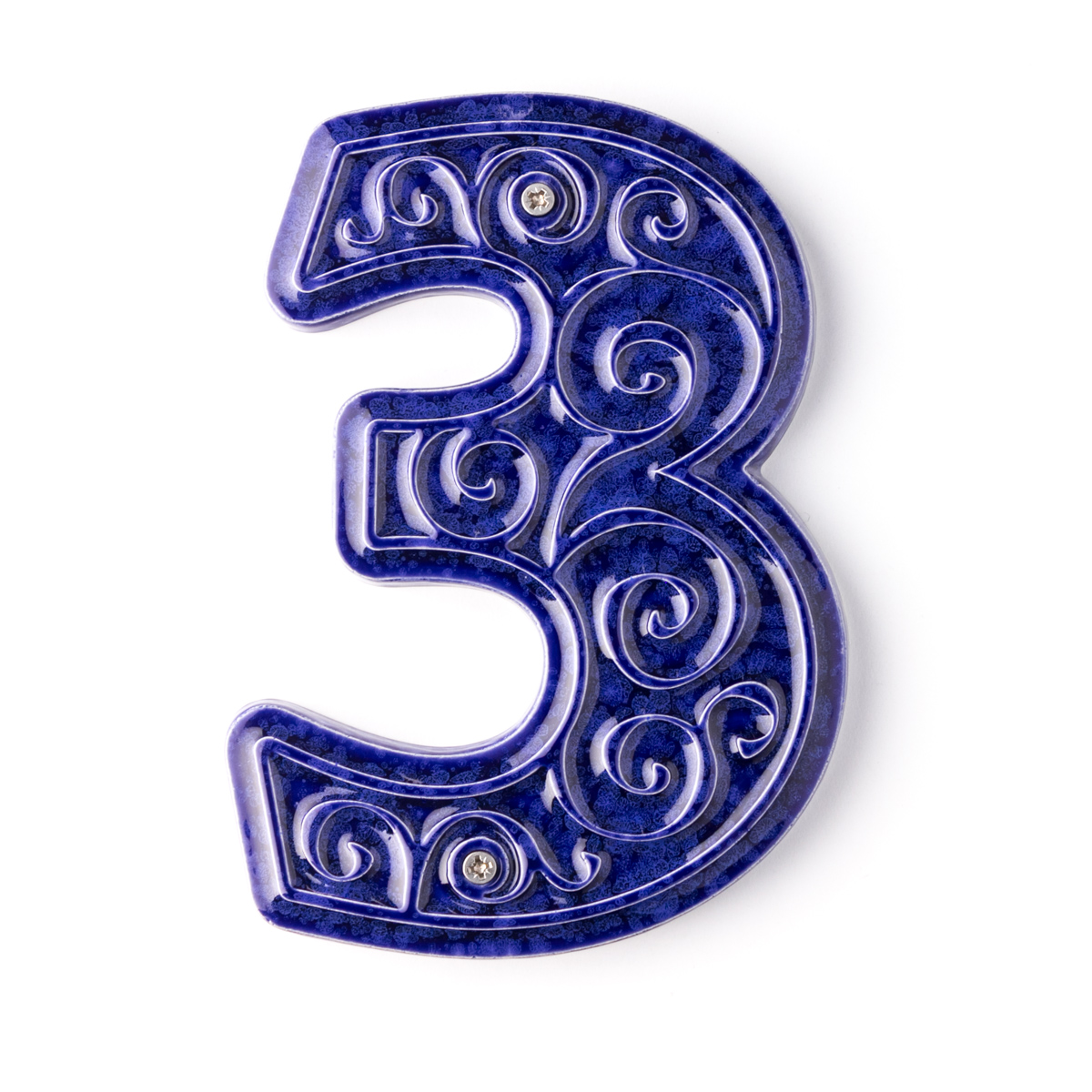 Numer domu, do przykręcenia, cyfra 3, niebiesko-granatowa