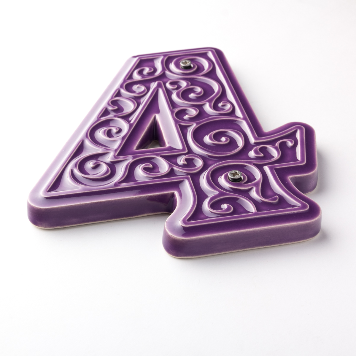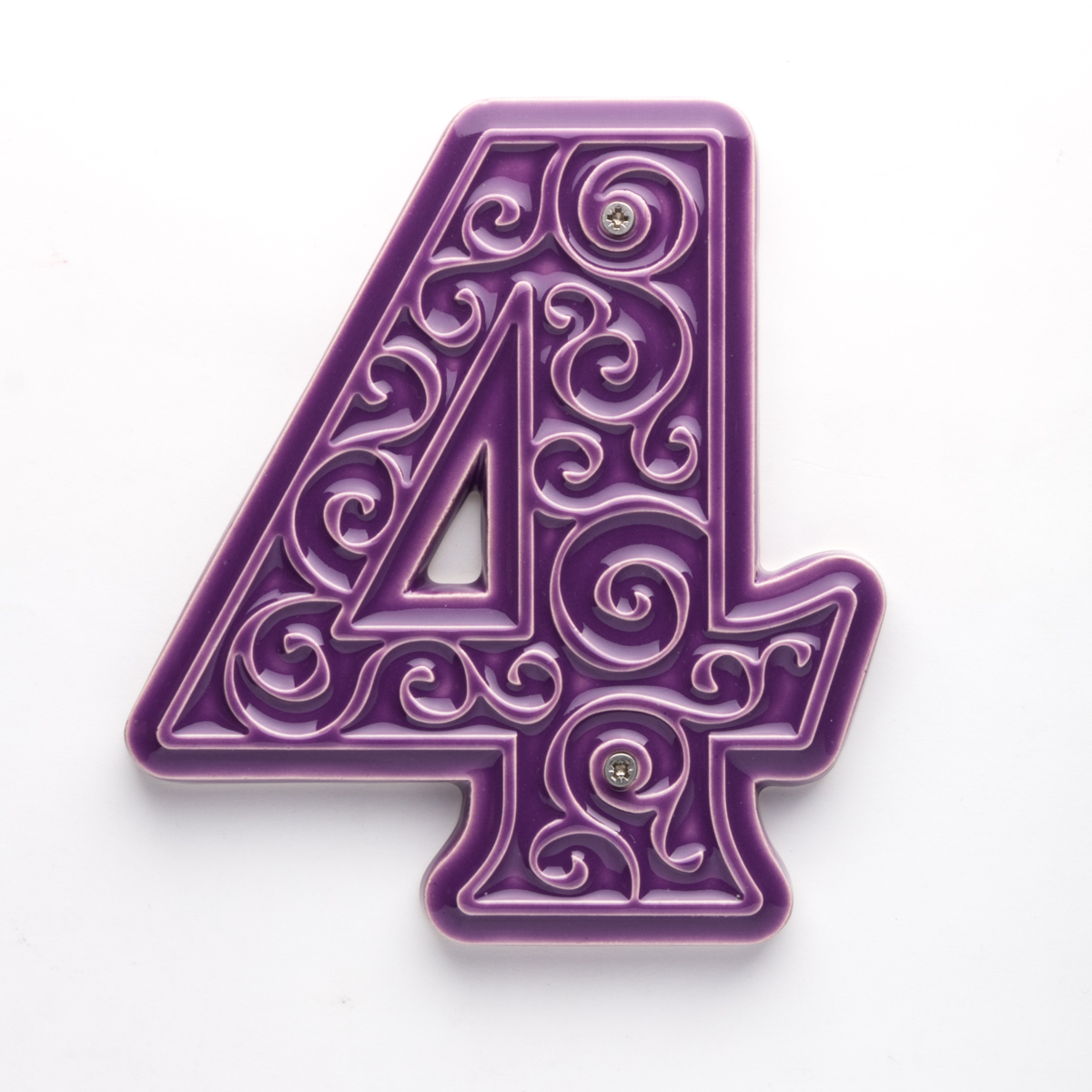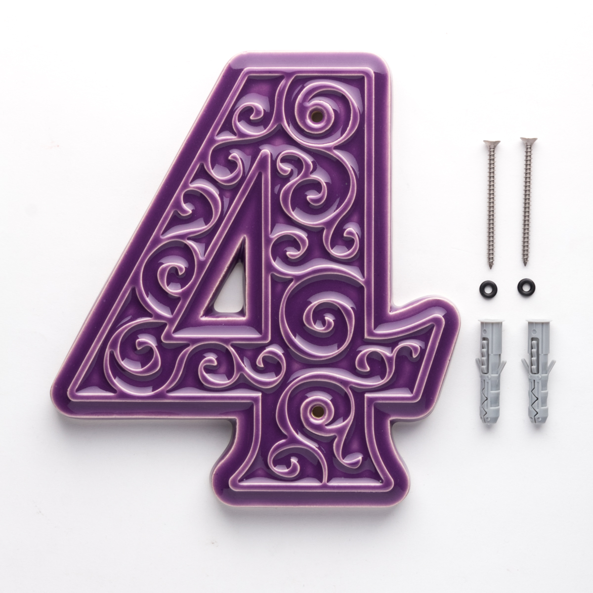 Numer domu, do przykręcenia, cyfra 4, fioletowa