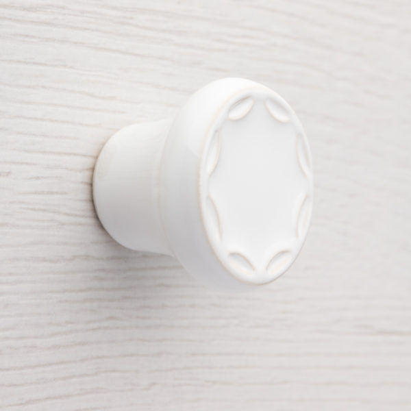 Ceramiczna cyfra z lekko wypukłym, dekoracyjnym ornamentem. Ręcznie wykonana z jasnej gliny, pokryta błyszczącym szkliwem. Dwukrotnie wypalana w wysokiej temperaturze.