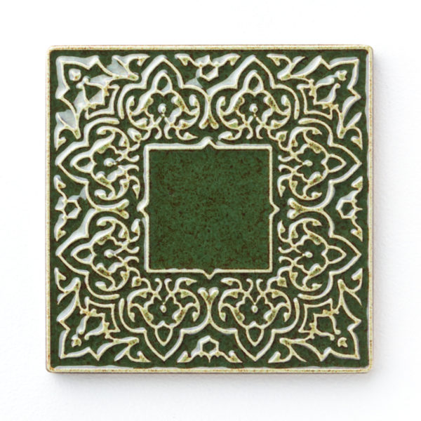 Ceramiczna cyfra z ozdobnym, lekko wypukłym ornamentem, do zamocowania na drzwi mieszkania lub domu. Wykonana z jasnej gliny, pokryta błyszczącym szkliwem. Dwukrotnie wypalana w wysokiej temperaturze.