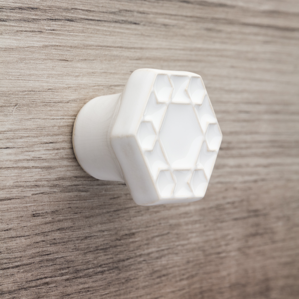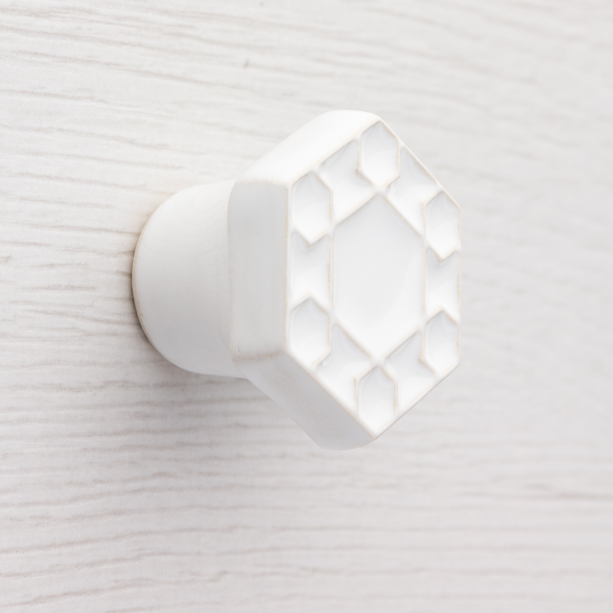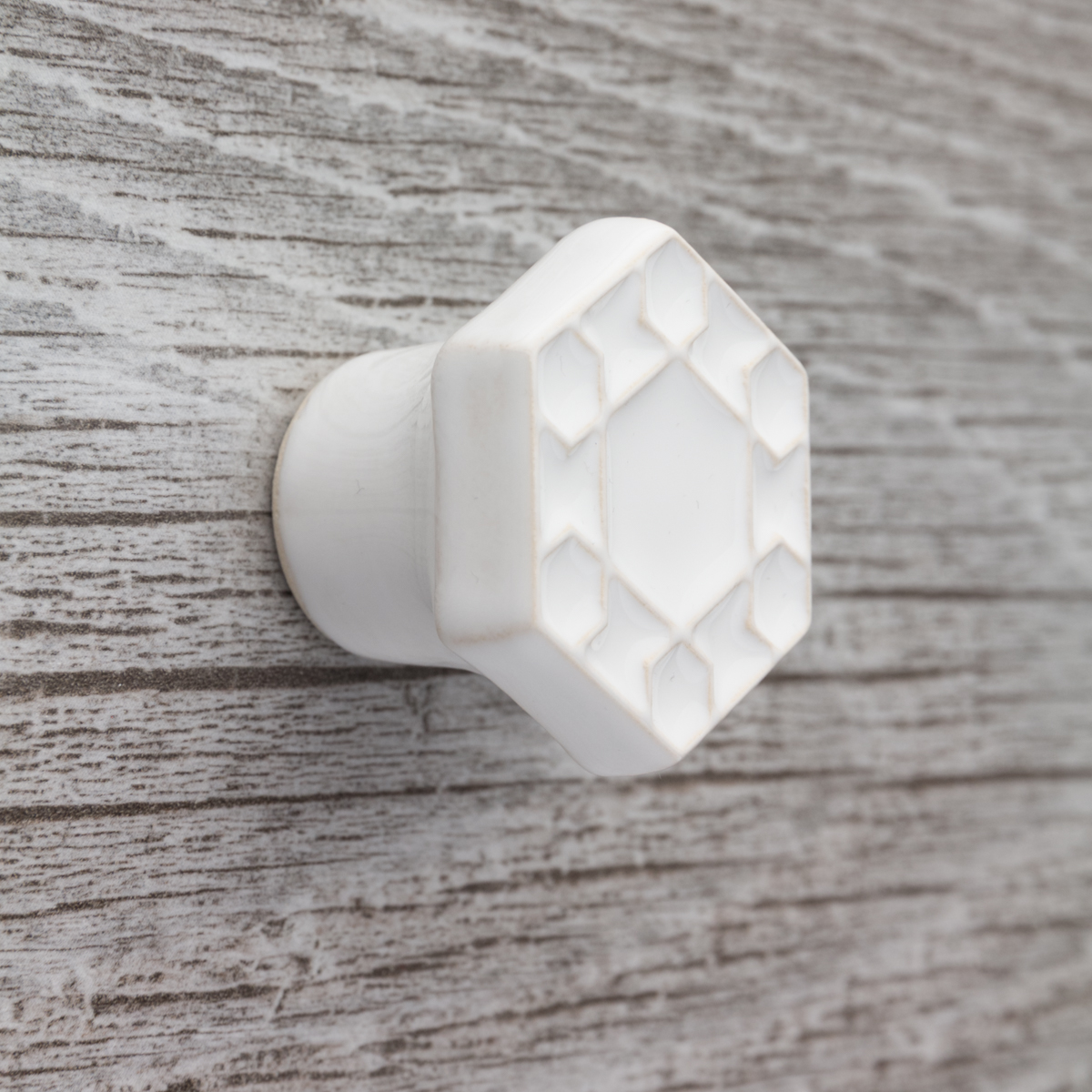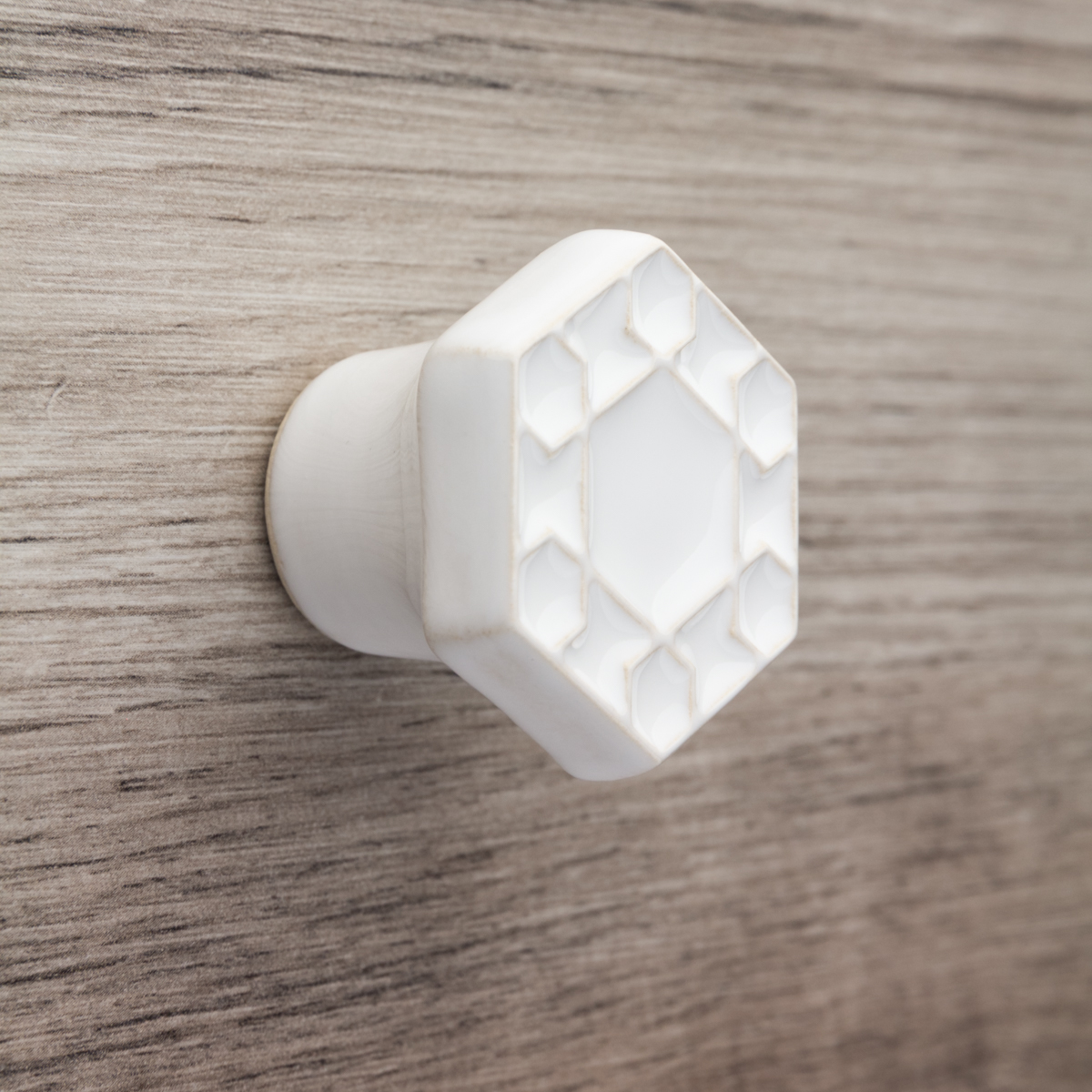 Ceramiczna gałka do mebli – ręcznie wykonana, ornamentowa, wg własnego projektu. Wykonana z jasnej gliny, pokryta błyszczącym szkliwem.