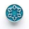 Ceramiczna gałka do mebli z lekko wypukłym ornamentem. Ręcznie wykonana z jasnej gliny, pokryta błyszczącym szkliwem.
