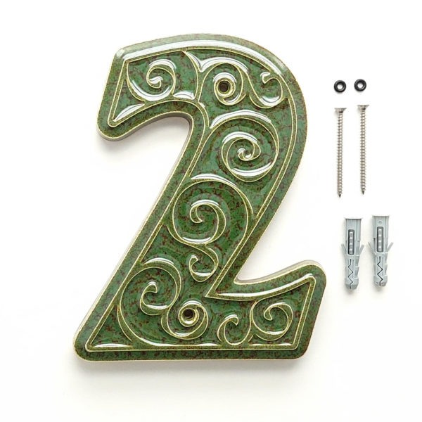 Numer domu, do przykręcenia, cyfra 2 zielono-brązowa